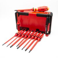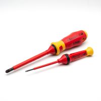 Все отвертки сертифицированы DIN EN 60900, требующего, чтобы каждый отдельный стержень был испытан при 10.000 Вольт.