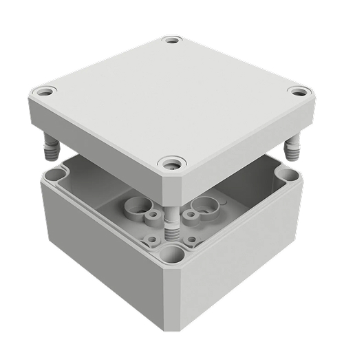 Корпус пустой, гладкие стенки, размеры:94*94*57, поликарбонат GF10, IP66, UV-устойчивый, без галогенов и силикона, светло-серый (RAL7035), рабочая температура -40...100°C, полиуретановое уплотнение, невыпадающие пластиковые винты, подходит для использования в помещении и на открытом воздухе, вес - 0,17 кг.