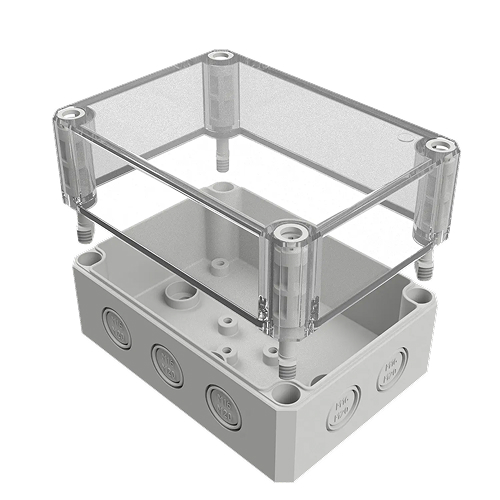 Корпус пустой, прозрачная крышка, размеры:130*94*81, поликарбонат GF10, IP66, UV-устойчивый, без галогенов и силикона, светло-серый (RAL7035), рабочая температура -40...100°C, полиуретановое уплотнение, невыпадающие пластиковые винты, подходит для использования в помещении и на открытом воздухе, разметка под кабельные вводы - 10*M16/20, вес - 0,27 кг.