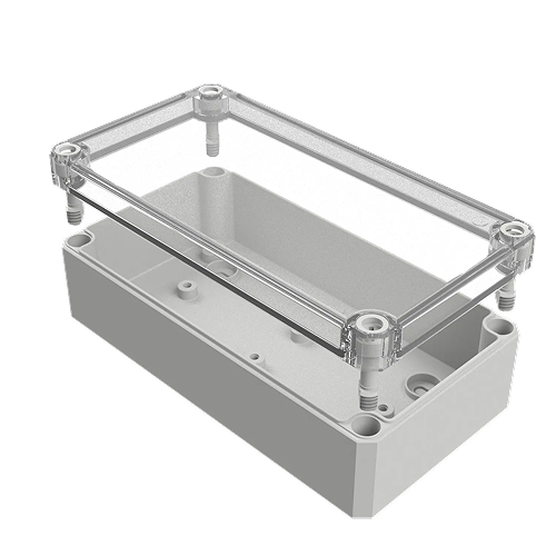 Корпус пустой, гладкие стенки, прозрачная крышка, размеры:180*94*57, поликарбонат GF10, IP66, UV-устойчивый, без галогенов и силикона, светло-серый (RAL7035), рабочая температура -40...100°C, полиуретановое уплотнение, невыпадающие пластиковые винты, подходит для использования в помещении и на открытом воздухе, вес - 0,27 кг.