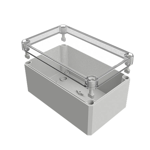 Корпус пустой, гладкие стенки, прозрачная крышка, размеры:180*110*90, поликарбонат GF10, IP66, UV-устойчивый, без галогенов и силикона, светло-серый (RAL7035), рабочая температура -40...100°C, полиуретановое уплотнение, невыпадающие пластиковые винты, подходит для использования в помещении и на открытом воздухе, вес - 0,40 кг.
